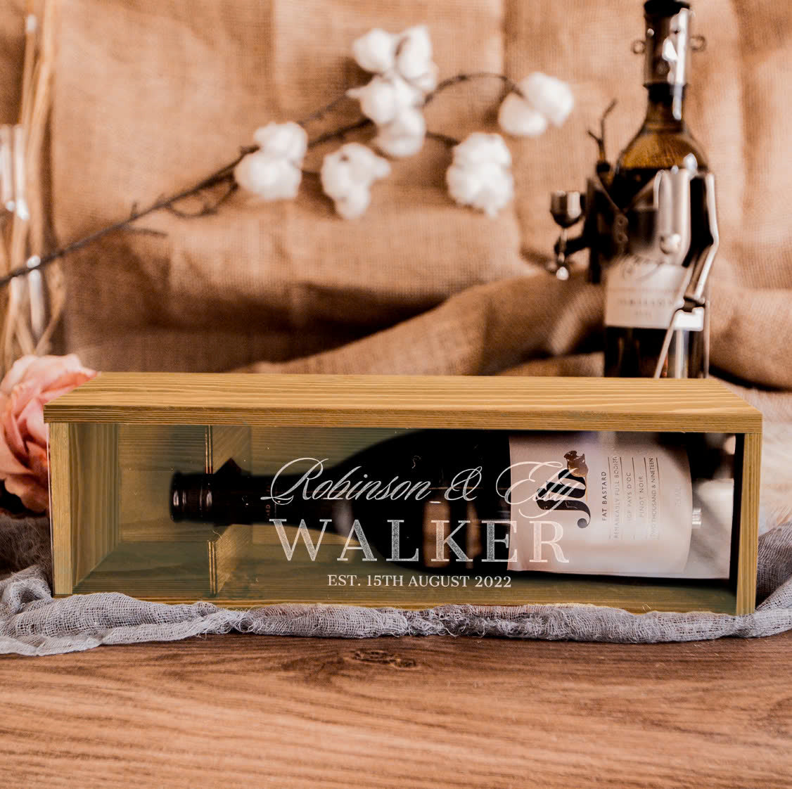 Engraved Clear Lid Vintage Rustic Wooden Wine Box