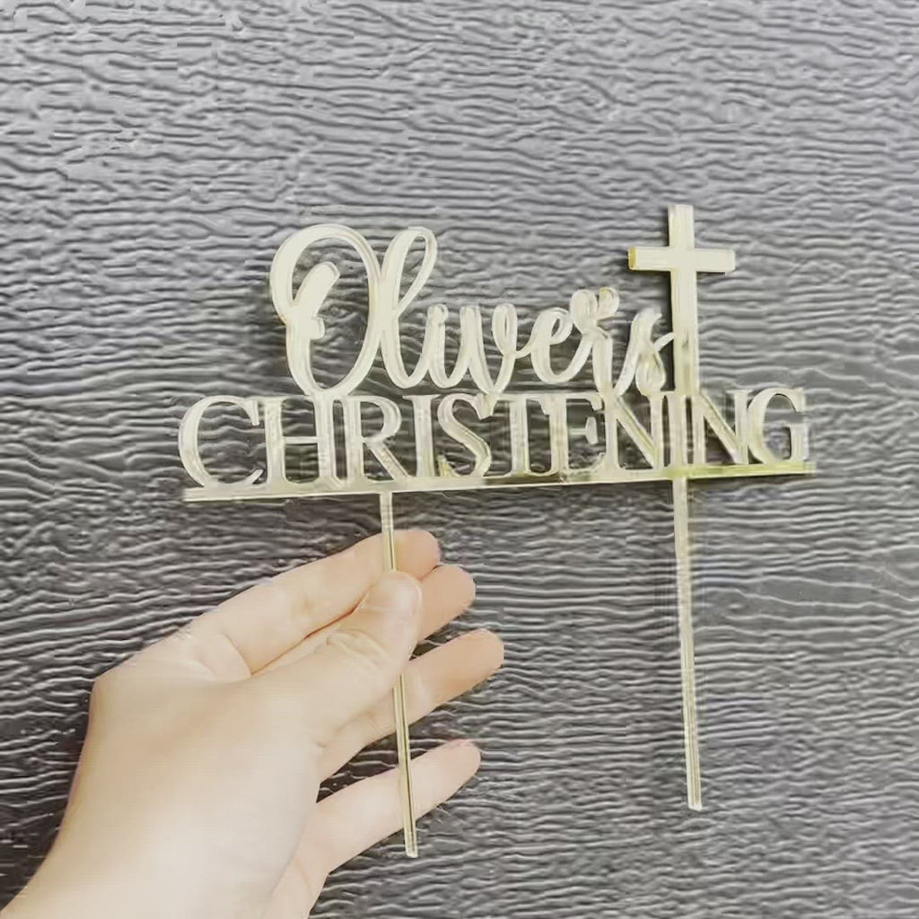Personalised Christening MDF/ Mirror Acrylic Cake Topper, Custom Cut Out Joint Name Birthday/ Wedding/ Celebration/ Event Party Decor Supply Toppers